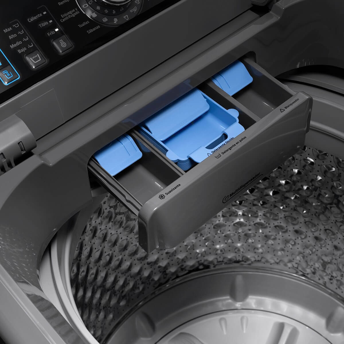 • Dispensador multiuso (suavizante, detergente, blanqueador)