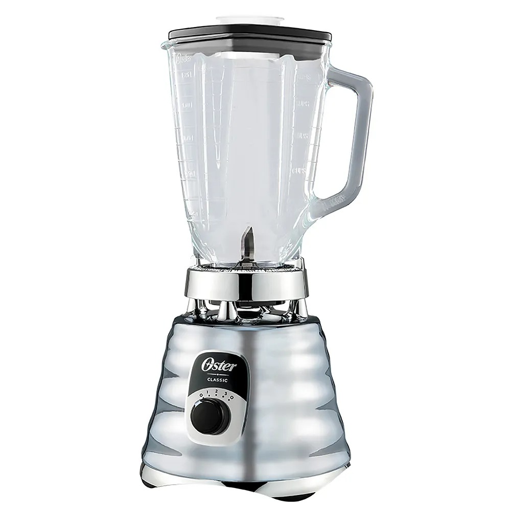 Las icónicas licuadoras Oster® son sinónimo de eficiencia y durabilidad. Y ahora, el nuevo diseño moderno de la espectacular licuadora clásica Oster® en cromo, reinventada y modernizada con perilla, te brinda una experiencia aún mejor. Su potente motor 6 veces más duradero** con 1000 W de potencia****, vaso de vidrio refractario Boroclass® resistente a ingredientes hirviendo*, acople metálico 10 veces más fuerte***, junto con su revolucionaria cuchilla trituradora de hielo te ayudan a preparar deliciosas y saludables recetas. Tiene un novedoso diseño y sus controles son ergonómicos. ¡Y estas son tan solo algunas de sus muchas otras ventajas!