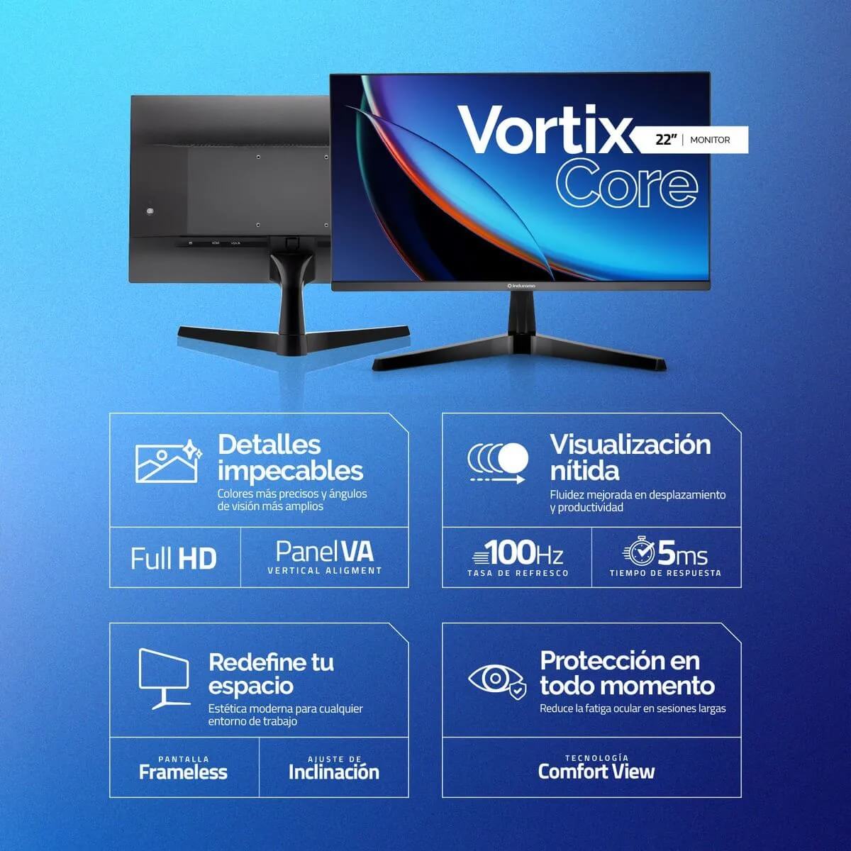 MONITOR INDURAMA 22″ VORTIX CORE VA FHD 1080p 100Hz