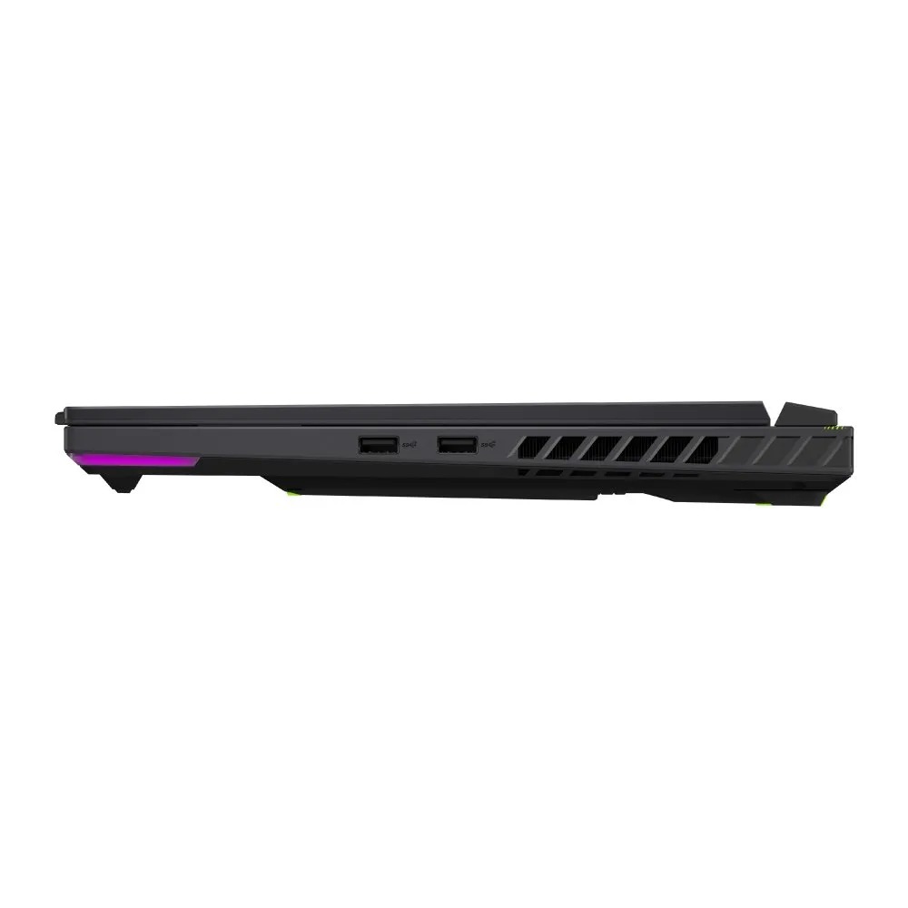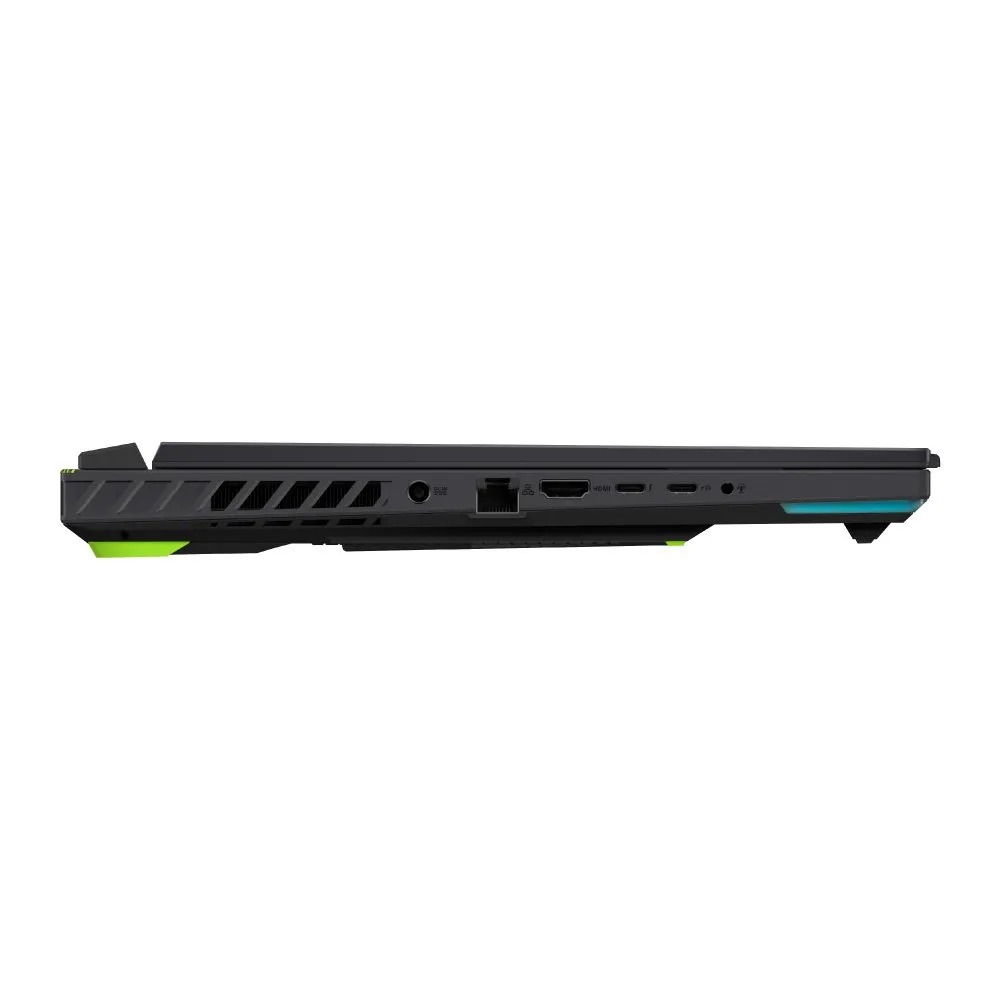 La ROG Strix G16 tiene una amplia selección de puertos, incluyendo 2 puertos USB-C con DisplayPort y carga, de los cuales uno es compatible también con Thunderbolt, USB Tipo-A, 1 HDMI para pantallas 4K/8K, 1 RJ45 y un conector audio combinado. Además, ofrece conexión WiFi 6e para una conexión inalámbrica estable y rápida.