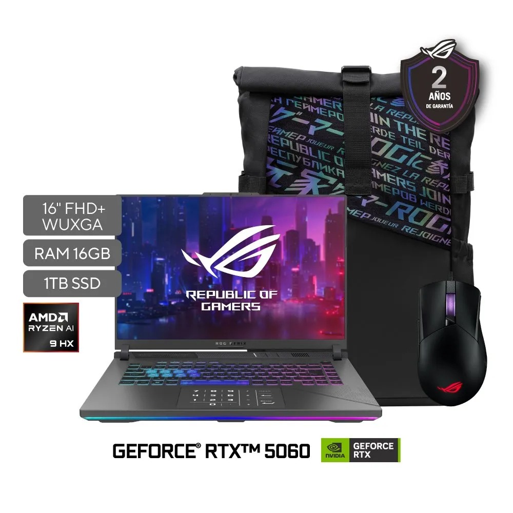 – Incluye mouse ROG Gaming + Mochila ROG.