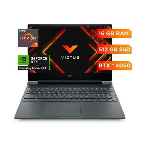 LAPTOP HP VICTUS AMD R7-7445HS 3.2GHZ-16GB-512GB SSD-TG RTX4050 6GB- SILVER-15.6″FHD-W11